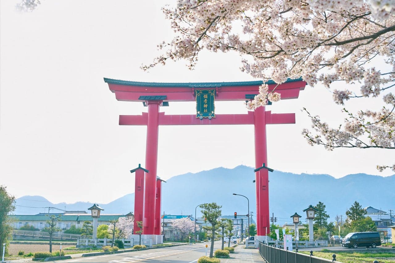 昭和57年に上越新幹線開通を記念し、彌彦神社一ノ鳥居をモデルに建設された高さ30.16mの鳥居。