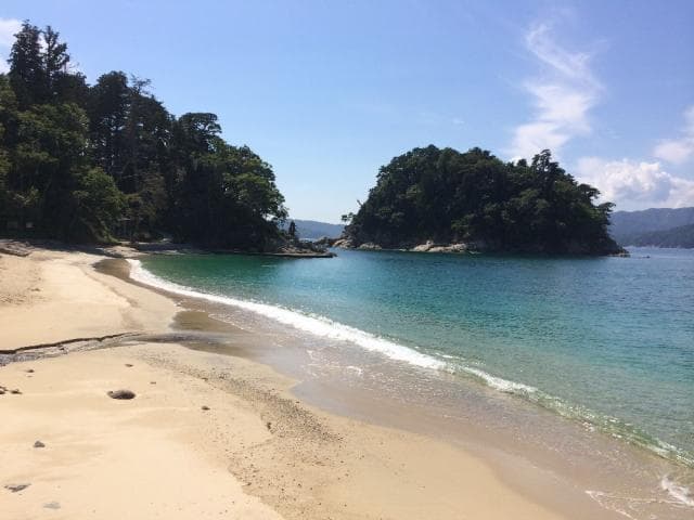 船越半島の最南端に位置し、白い砂浜がとても綺麗な海水浴場。すぐそばには荒神社があり、奥には先人からの言い伝えのある力神石があります。是非探してみて!