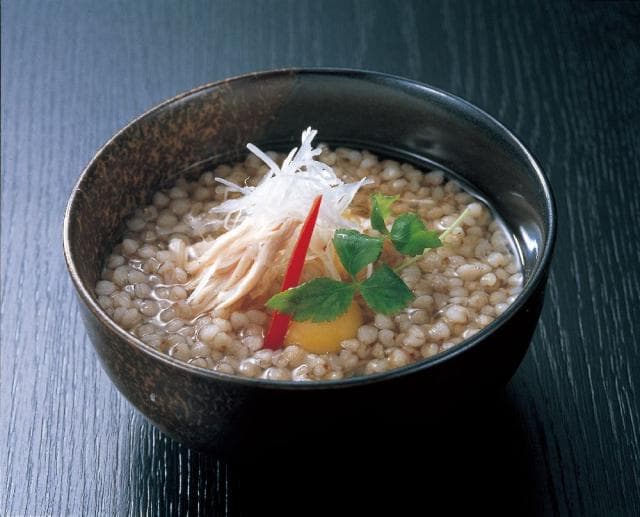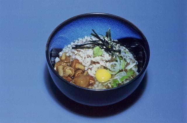 そばの実の表皮だけをむいたものをむきそばと呼び、柔かくなるまでゆでて、鶏と昆布のだしをきかせた汁をはり、サラシネギ、ナメコ、ノリ、ワサビなどをそえて食べる。