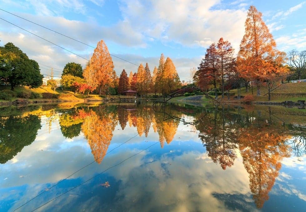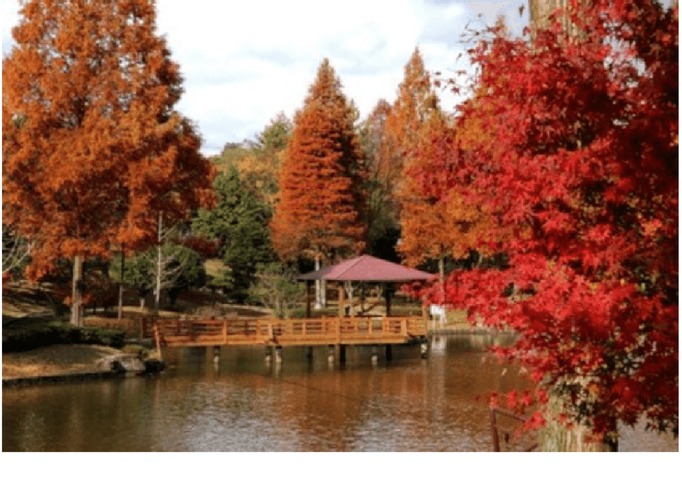 園内の多種多様な木々が、色とりどりの秋の風景を見せてくれます。のんびりと散歩道を歩いて紅葉を楽しんでみてはいかがでしょうか。