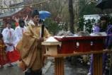 祭神である少彦名命が裁縫の道を始めて教えたといわれることから始まった神事です。1年の間に納められた針を本殿にて祓いを受けた後、鉢塚に納め塩をかけて土に返すことで、針の労をねぎらい、今後の上達を祈るお祭りです。