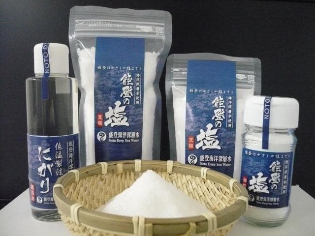 能登海洋深層水施設では汲み上げた海洋深層水を100%使用し、バランスのとれたミネラルの特性を活かす為に60度以下の温度でゆっくりと時間をかけ手塩に仕上げました。 海洋深層水を1.5倍に濃縮した水を使用し、非直火型低温製法で5日間かけて塩に仕上げます。能登の塩は辛味が増す前の1番塩だけを製品にしています。約3トンの深層水原水より60kgほどしか取り出せず、納得のいく味に仕上がっています。