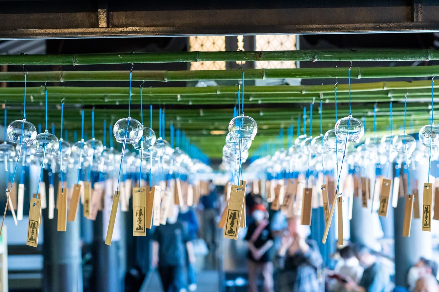 袋井市にある遠州三山(法多山・可睡齋・油山寺)では、夏の涼のおもてなしとして遠州三山風鈴まつりが開催されます。可睡齋では約2,000個の江戸風鈴、法多山は願掛け風鈴、油山寺は南部鉄器の風鈴がそれぞれ展示され、各お寺の個性を生かした風鈴を見ることができます。