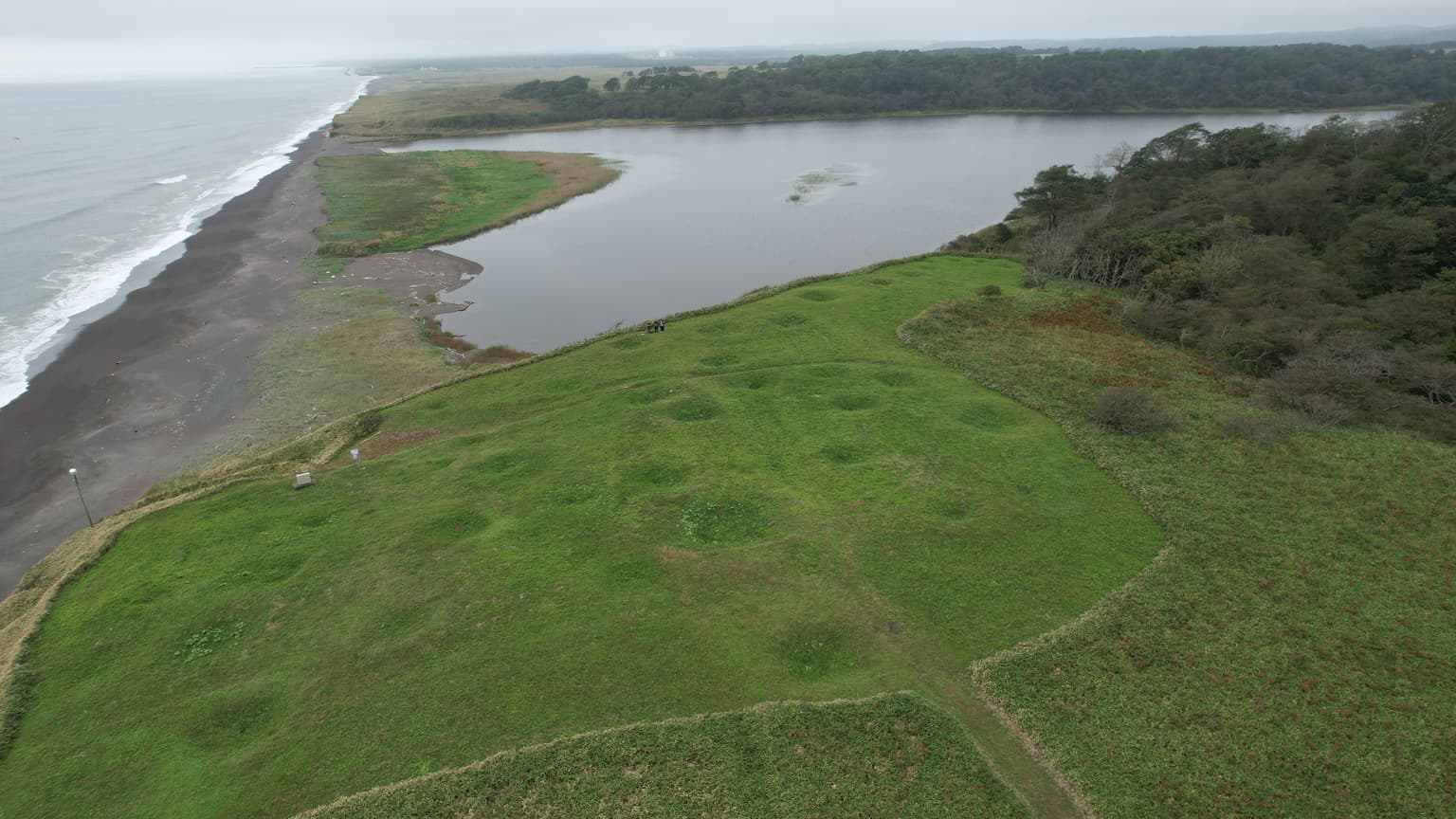 この竪穴群は太平洋に面する標高15mの晩成海岸段丘上に南北約2kmにわたってつくられた先住民族の一大住居集落跡で、周辺に約130ヵ所も分布しています。