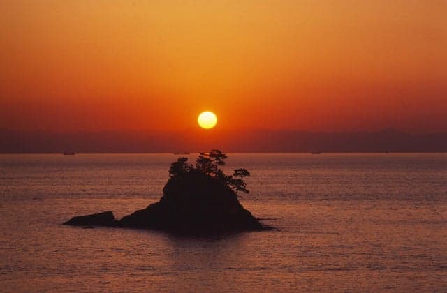 三河湾国定公園にある篠島は、愛知県知多半島の先端、師崎港から海上わずか4kmの近さ。名古屋からのアクセスの良さが人気となっています。。三河湾と伊勢湾の潮流が交じり合う場所として新鮮な海の幸が豊富に獲れます。中でも島の名物はフグで、フグ料理を目当てに島へ渡る人も数多くいます。また、島の西側からの夕陽が特に美しく、「日本の夕陽100選」に選ばれているほどです。もちろん「海水浴」「釣り」などもたっぷり楽しめます。
