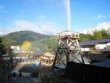 峰温泉大噴湯公園はいつでも噴き上げている自噴泉で、100℃の源泉が毎分600リットル湧き、約30mまで噴き上がる豪快な様が見れます。80数余年ひとときも絶える事がないダイナミックな「地球の息吹」を体感できます。温泉卵を作ったり、地場産品なども販売しています。