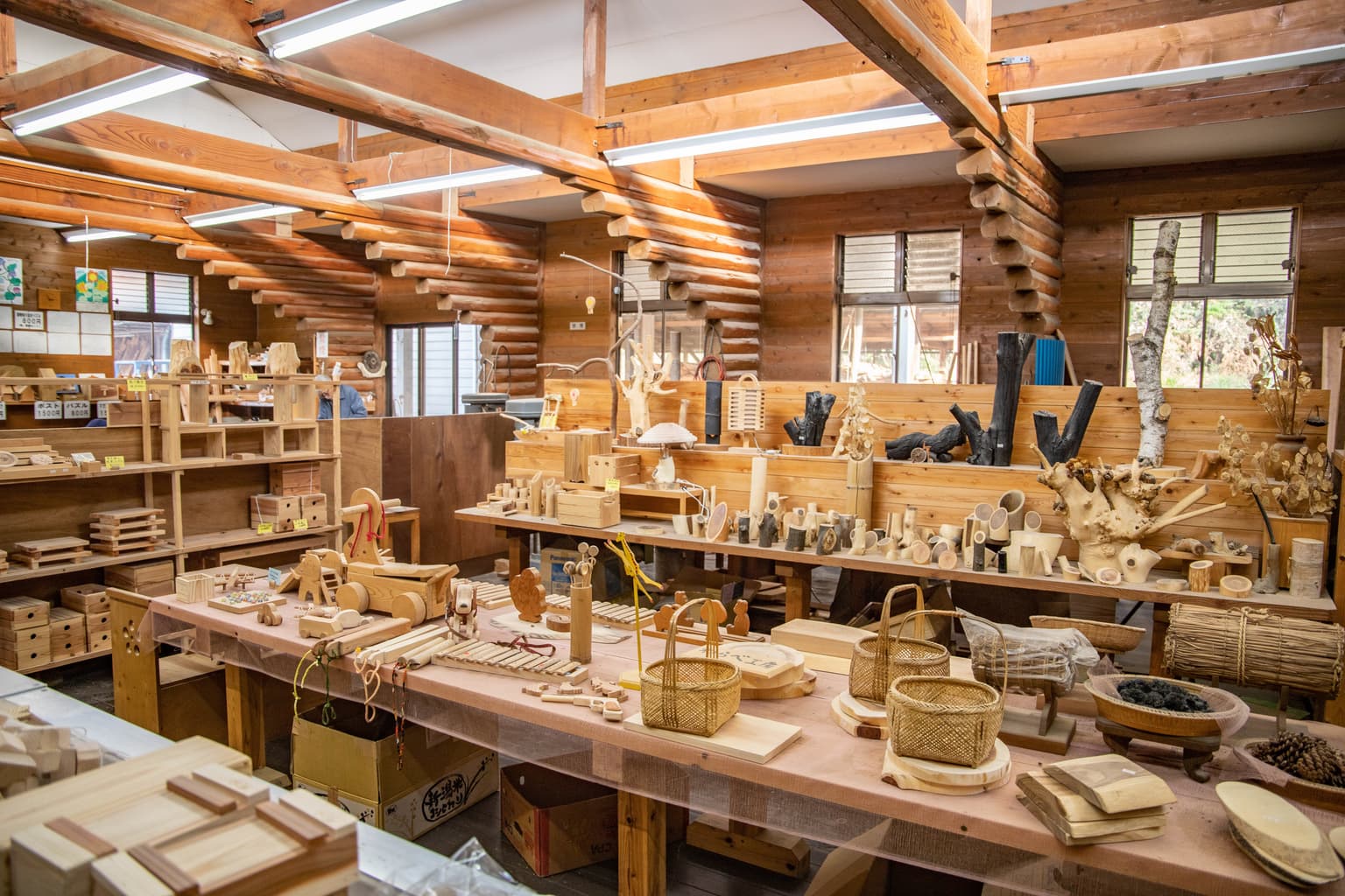 地域材を使って木工体験や木工芸品の販売、製材を行う工房。木工キットも販売しており、マガジンラックや小物入れなどを簡単に作ることができるので、親子で木工体験をお楽しみいただけます。