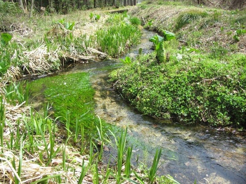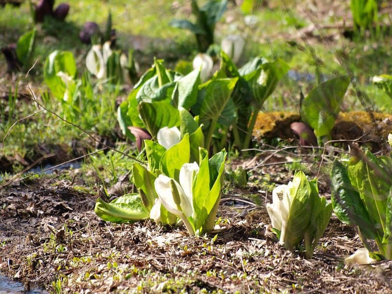 約30分で一周できる木道や小川のほとりには、ザゼンソウやミズバショウが咲きます。小川の清流にはバイカモを見ることもできます。