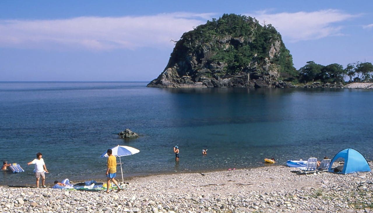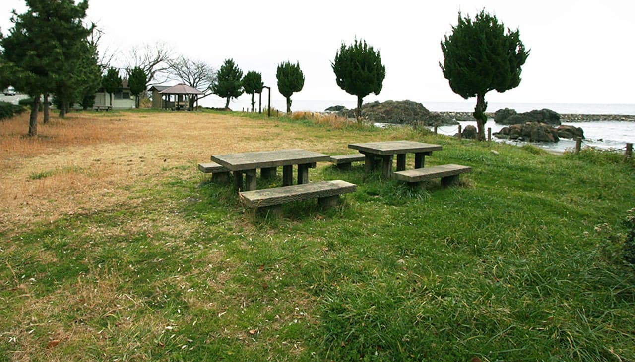 前浜海岸一帯は穏やかな海岸美が続く景勝地で、赤亀岩と風島弁天の間にある海水浴場と一体となったキャンプ場です。小石の浜は護岸され歩きやすくなっています。公園なのでトイレは通年利用できますが、更衣室とシャワーは海水浴場開設期間中のみです。ゴミなどの持ち帰りをお願いします。