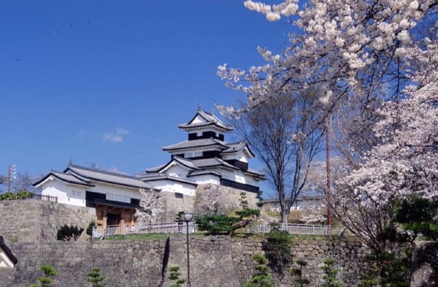 江戸時代の寛永9年(1632)に丹羽長重が大改修した奥州関門の名城です。復元された三重櫓や東日本大震災による崩落から復旧した端正な石垣と、桜のコントラストが見事です。