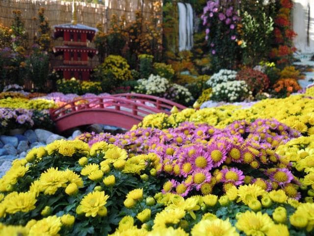 表と裏の色が違う岐阜発祥の「美濃菊」や「山菊」、「大菊」など愛好家によって大切に育てられた菊が一同に展示されます。菊人形や菊花庭園も人気です。