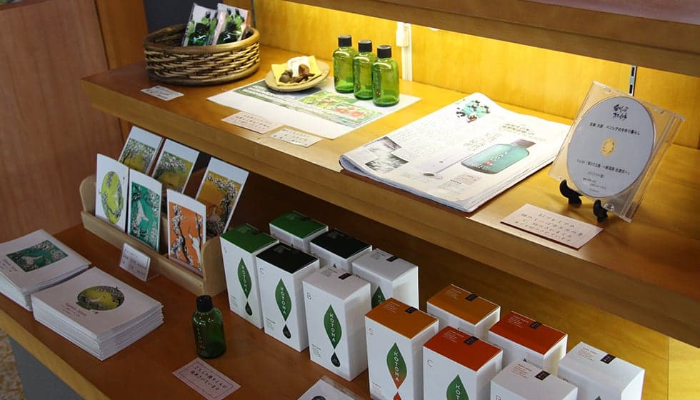 「佐渡産椿オイルSADO」もこちらで製造販売しています。食堂スペースもあり、各陶芸作家の器を使って、地場産食材を楽しんでいただくこともできます。
