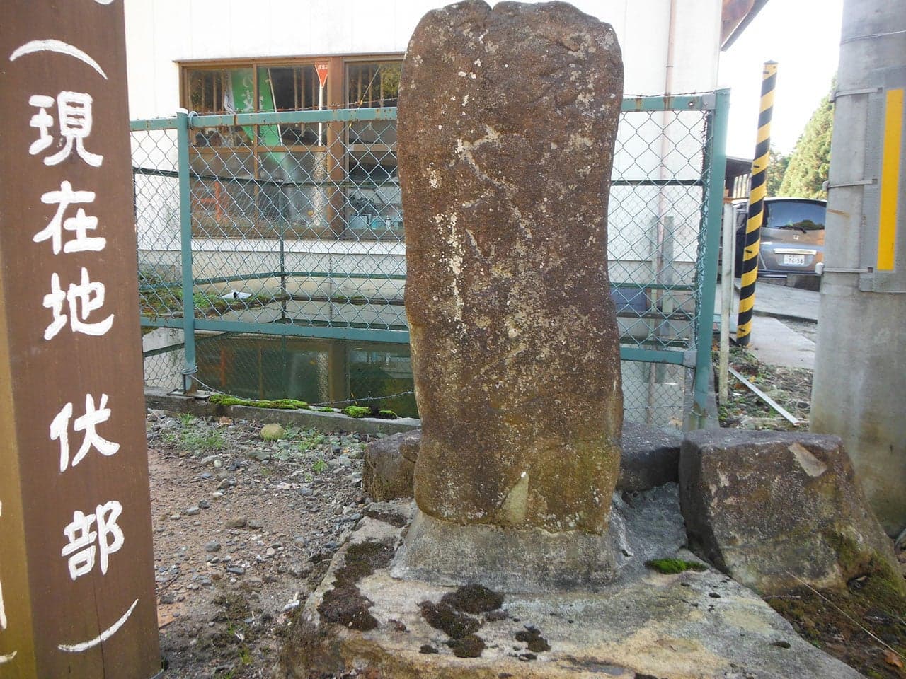 伏部のはずれ竹野町へ至る里道の三叉路に松野尾より続き、ここでも「右はやひこ」の道標をみることができます。