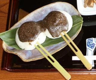 道の駅からむし織の里しょうわの中にあるお食事処苧麻庵。じゅうねんダレがたっぷりかかったばんでい餅の素朴な味を、ぜひご堪能ください。