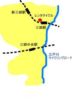 江戸川の土手を利用した全長約40km(三郷市~幸手市)、片道約2時間のサイクリングコース。南に下ると葛飾区のサイクリングロードに通じ、柴又帝釈天や矢切の渡しの近くまで足を延ばすことも可能です。また、橋を渡ると千葉県側のサイクリングロードを利用して周遊することもできます。(約1時間半~2時間)