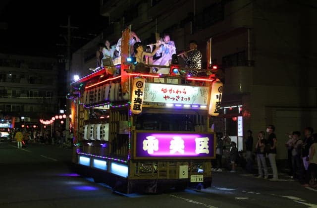 音楽隊や花車、マーチングバンドとともに芸妓衆や老若男女が「やっさもっさ」のかけ声も高らかに湯河原温泉街を踊り歩きます。3日は20時より花火大会が行われます。
