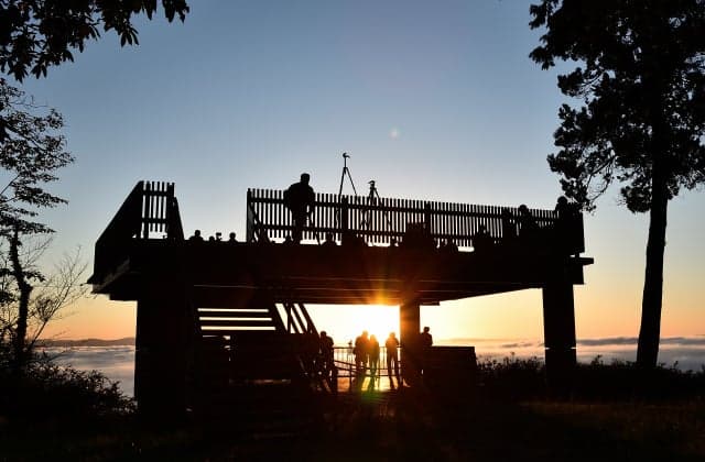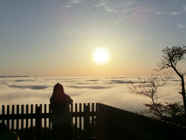 三次市が一望できる展望台。秋から初春にかけての快晴の日の早朝には,深い川霧が三次盆地を覆い隠し,霧から顔を覗かせる山々の頂がまるで海原に浮かぶ小島のように見える,幻想的な「霧の海」を見ることができる。