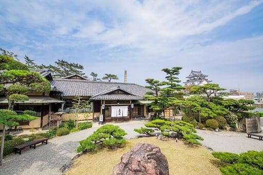 旧岸和田城内の新御茶屋跡などに昭和4年から10カ年の歳月を要し、造営された広壮な回遊式日本庭園。市指定名勝にもなっており、一般公開されている美しい庭園には、鯉の泳ぐ池と近代日本建築の粋をこらした母屋が絶妙に配置されており、和風建築と回遊式庭園が織りなす風景は歴史を感じる景観である。