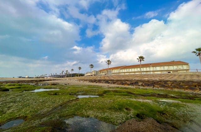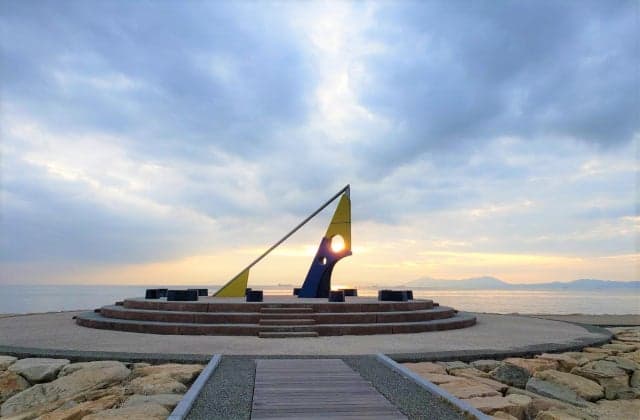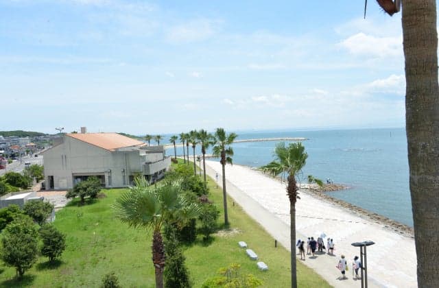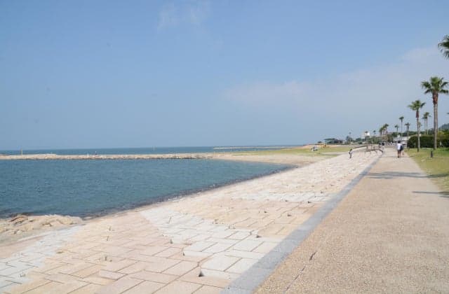 「日本の夕陽百選」に認定された海岸で、瀬戸内海に沈む美しい夕陽を眺めることができます。浜辺にはフェニックスが植えられ、リゾート気分を満喫できます。シャワー・更衣室・トイレ・管理棟などの設備があり、海水浴やマリンスポーツを楽しむことができます。海岸には、トロン温泉のある宿泊研修施設「きらら交流館」、ガラス体験のできる「きららガラス未来館」、スペイン料理のレストランがあります。
