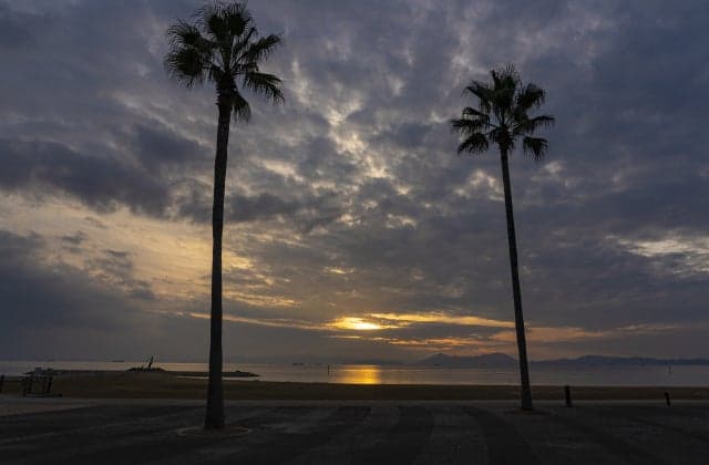 日本の夕陽百選!ヤシの木が揺れる南国チックなサンセット