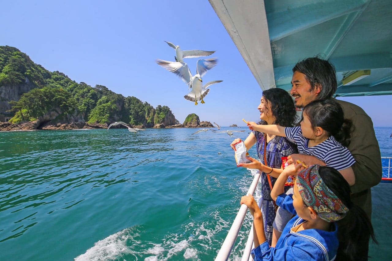 名勝天然記念物の笹川流れをクルーズ!カモメに餌やりもできる!