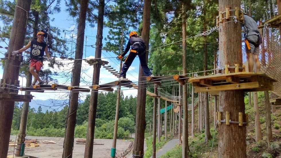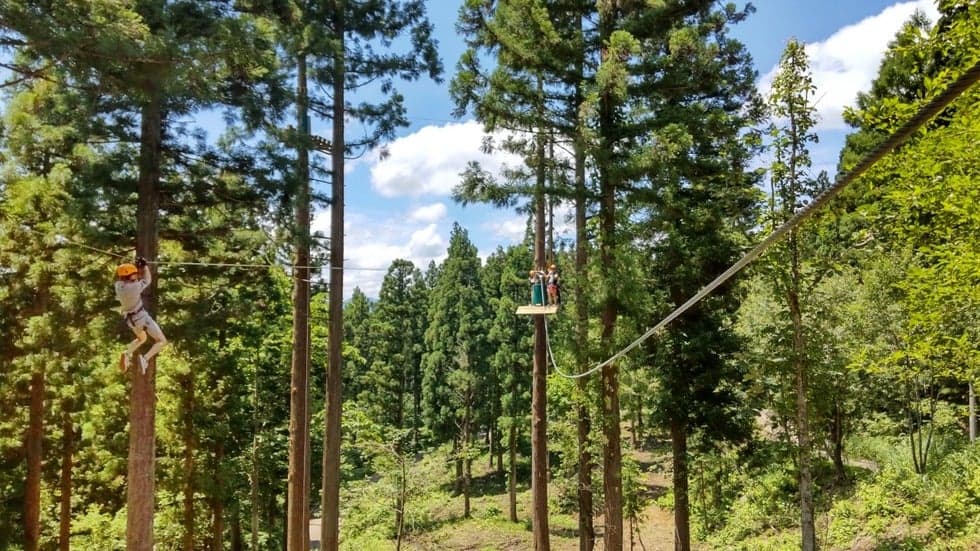「自分で考えて、自分で解決する」フランス生まれのスリル満点本格アクティビティです。頭と体をフル活用し、子どもから大人まで郡上の豊かな自然をお楽しみいただける森林アドベンチャーです。イージーコース(初級&中級)全16ゲームチャンピオンコース(中級&上級&ZIP)全30ゲーム地上20mから望む景色と空中体験を。