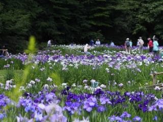 約2.1ヘクタールの園内に200品種以上のハナショウブが6月頃次々と咲き乱れます。9月中旬頃には秋の七草の一つであるフジバカマが公園の池の周りに咲きます。