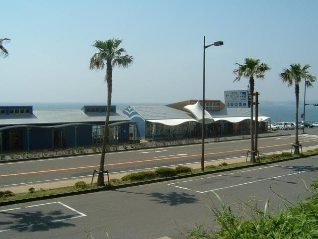 国道3号沿いに位置し、波やカモメをイメージしたブルーの観光物産館は東シナ海に面し、甑島列島も望めるロケーションと絶景のサンセットは圧巻です。館内は阿久根の新鮮な野菜、魚、特産品が展示販売され、地の物にこだわった7種の海鮮丼と阿久根産のお肉を使った焼豚丼など、阿久根ならではの味覚を丸ごとご賞味いただけるレストランもあり、満足度120%です。