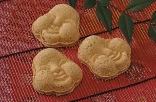 お多福の顔の型に作られた落雁菓子。茶菓子としてもてはやされています。