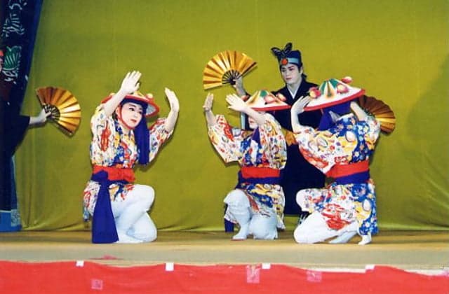 男女のむつまじさを表わす踊りで、三組の男女によって演じられる。男の蝶が舞い出て、女を象徴する花を誘う。