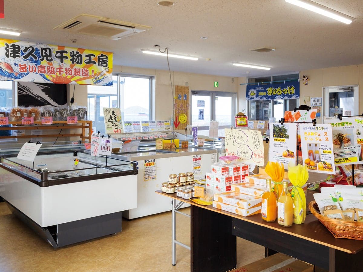 津久見市の新鮮な海の幸をはじめ、みかんなどの農産物や加工品など、津久見の特産品がズラリと並びます。