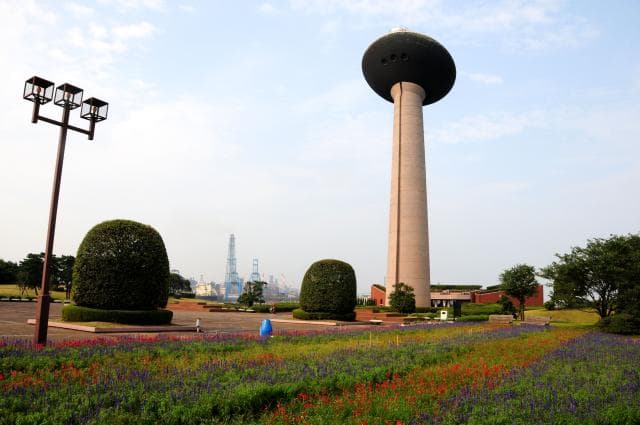 鹿島港の中央に位置し,高さ52メートルの展望塔の上からは,鹿島臨海工業地帯をのぞむことができます。ソテツやカナリーヤシなどの南国の樹木がおよそ8000本。季節ごとに色とりどりの花を咲かせ芝生でゆっくりくつろぐことができます。鹿島港を周遊する遊覧船『ユーリカ号』の乗り場も隣接しています。