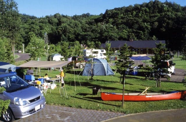 天塩川とポンピラアクアリズイング(温泉施設)の間に位置。ゆったりとしたサイトと、温泉が隣接している人気のオートキャンプ場です。