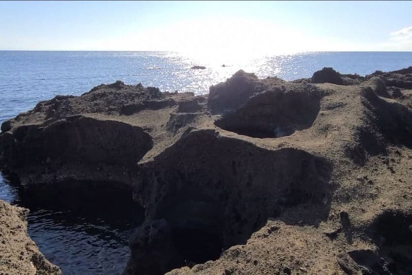 隆起波食台は1802年に発生した小木地震で、約2mほど大地が隆起してできたものです。トンネルを抜けた先に見える赤茶けた大地と荒々しい岩が広がる様は、まるで火星にいるかのよう。