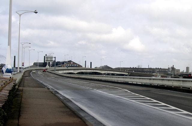 射水市八幡町と高岡市石丸を結ぶ大橋。「海と交易」をテーマとするモニュメントを持つ。