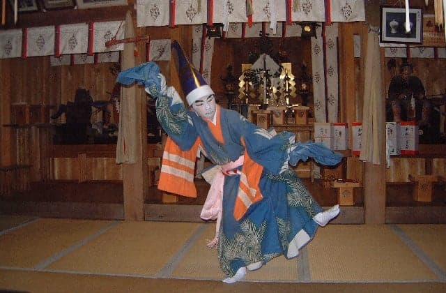 町指定無形文化財。能登比め神社の春季例祭の夜半に同神社で催される神事舞の一つ。1年の豊作を願い少年が1人で舞い、終始無言で囃子方に合わせて農事に関する所作を演じ清めをなす舞とされる。