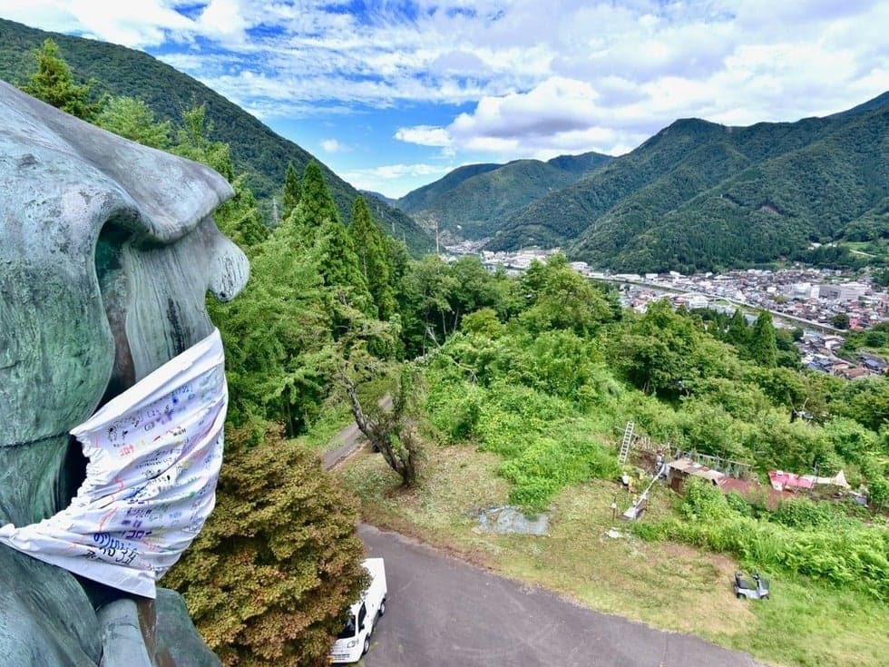 神岡の町を見下ろす巨大な達磨像