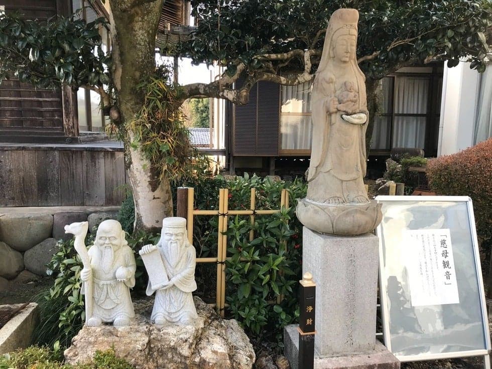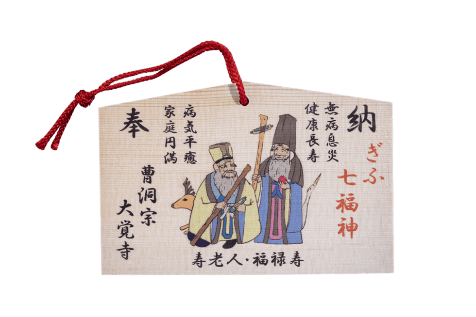 平成24年(2012年)に岐阜市・各務原市をめぐる七福神として「ぎふ七福神」は開創されました。大覚寺には、「福禄寿と寿老人」の2神が祀られています。「寿老人」は、中国道教の神様、その姿は長い頭に白く長い立派なヒゲ、人間の寿命を記した巻物を杖にぶら下げています。「福禄寿」は、頭が長くて、白く長いヒゲの姿、杖を片手に腰にひょうたんををつけ白い鶴(地域により亀)をお供に従えています。違いは、「福禄寿」は鶴(または亀)と連れているのに対し、「寿老人」は鹿をお供にしているそうです。