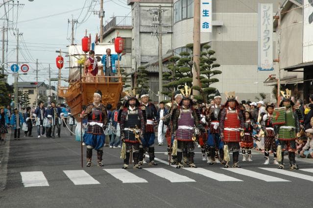 市民総参加の「お祭り」で、松浦党が活躍していた松浦水軍時代の貿易船を再現した「山車」を使ったパレードや武者行列が行われます。まるで松浦の歴史絵巻を見るような松浦最大のイベントです。多彩なステージイベント、市民総踊り、松浦党子ども武者など多数催し物が行われます。