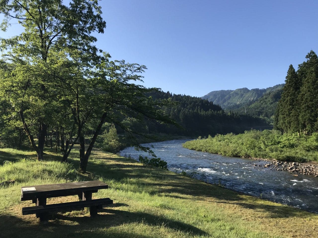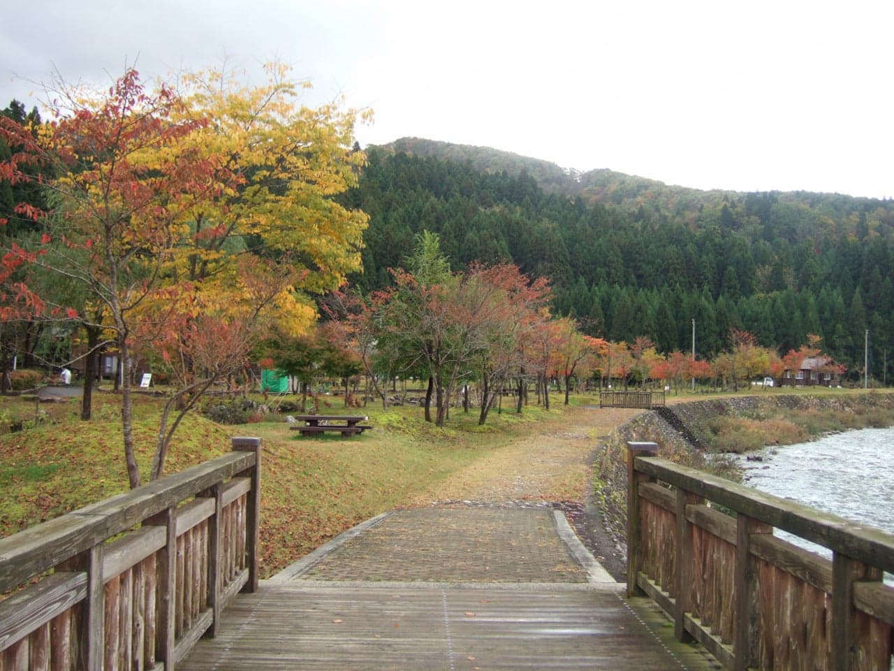 当公園は、新潟市内から車で約1時間という気軽さと、一度に山と川を楽しめる恵まれた自然環境が最大の魅力。公園の横を流れる加治川は清らかで、釣りはもちろん水量の少ないときは川原で水遊びや鉱石探しも楽しめます。また、園内にも水遊びができる人工の小川が流れているので、小さいお子様はこちらのほうがお勧め。