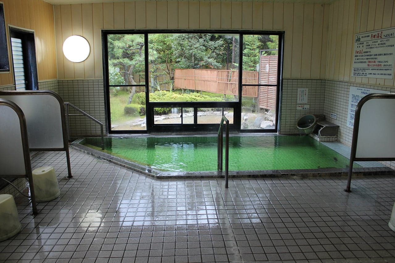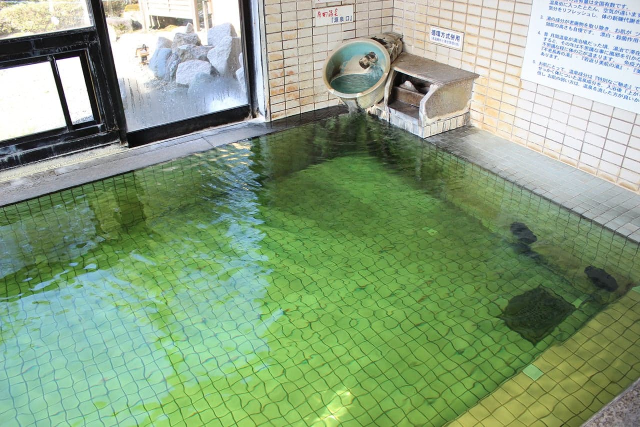 硫黄成分の含有量は国内随一。エメラルドグリーンのきれいな色をしており、入浴すると肌がつるつるになることから美肌の湯とも呼ばれている。宿泊客だけでなく、地元の人も足を運ぶ姿が多く見られる人気の共同浴場です。