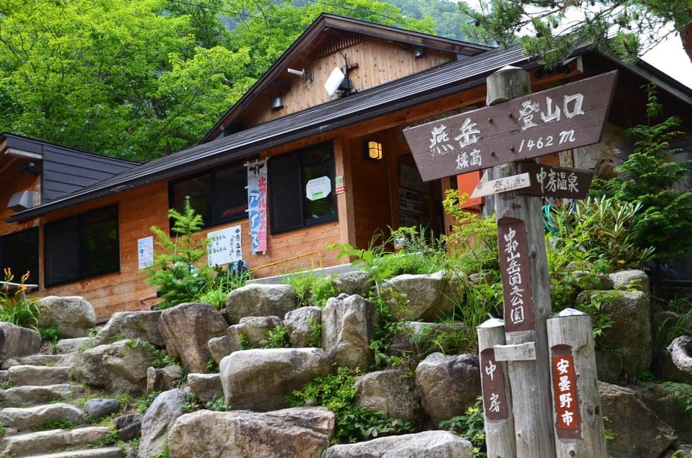 登山口には豊富な源泉が湧く中房温泉が建ち、古くより登山基地として利用されています。
