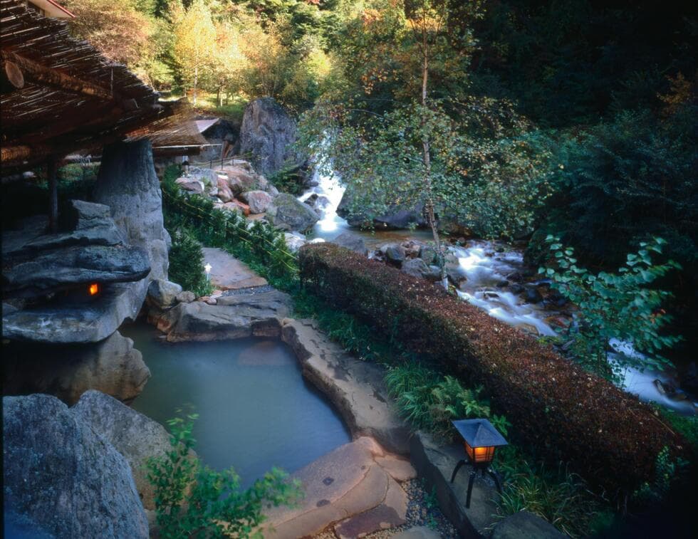 南・中央アルプスを一望でき、滝、渓谷、草原と豊かな自然に恵まれた温泉地。特に秋の紅葉はすばらしい。