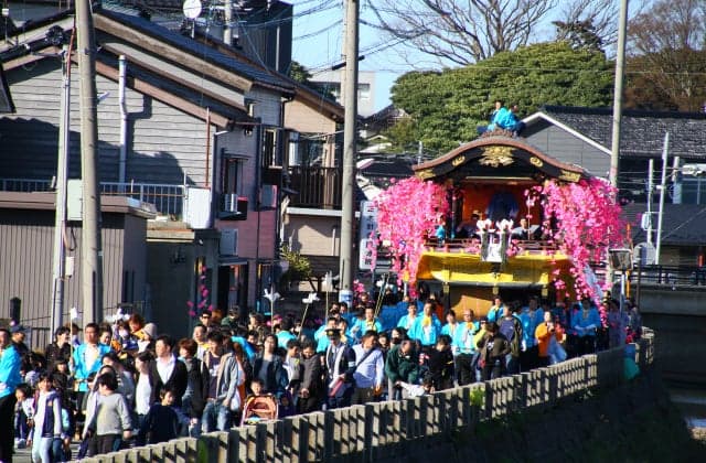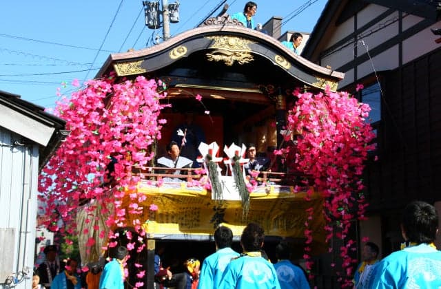 総輪島塗りの豪華な山車が一日中市内を練り回ります。山車には毎年工夫を凝らした飾り人形が乗せられ、当番の歳男の指揮で数百人の市民や観光客達によって市内を引き回ります。