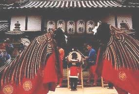 江戸中期に船越八幡宮に奉納したのが始まりと伝えられる獅子舞で、二人立ての2頭1組で稚児の獅子あやしが付く特色をもつ。笛と唐子の打つ太鼓に合せて、獅子が勇壮に舞い、時々太鼓を離れた唐子が獅子にからんで舞う。