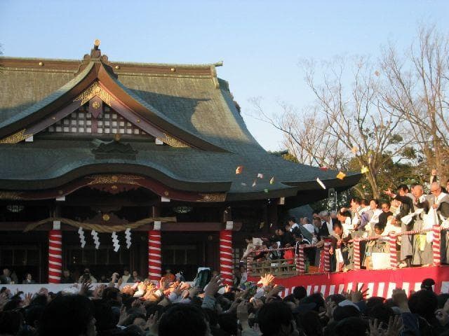 笠間稲荷神社は初詣や菊まつりのほか、節分祭でも有名で、豆まきには身動きできないほどの人出があります。有名人の参加などもあって毎年話題を呼び、参道脇などは露店でにぎわいます。