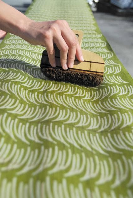 染色には、さとうきびの葉と穂の部分を用い、染液につける時間や、葉を刈り取る季節によっても少しづつ色が変化し、若草色や萌葱色などの グリーン系から黄金色などの落ち着いたイエロー系まで実に様々な色を楽しむ ことができます。
