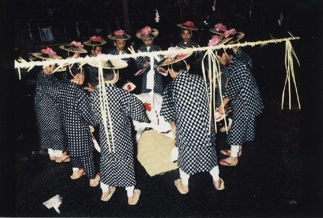 古い伝統をもつ神事芸能。農作物が豊かに実り村の暮らしが平穏であるようにという願いを込めて奉納されます。
