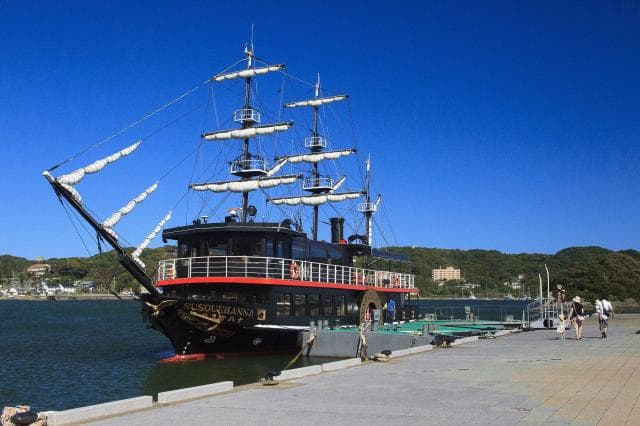 幕末開港の舞台、下田港を遊覧船「黒船」に乗って一周するコースです。海岸沿いの町並み、寝姿山、ペリー艦隊投錨の地などをめぐります。その他にも南伊豆町の石廊崎にて石廊崎岬めぐりコースもございます。