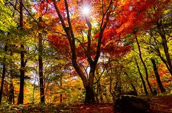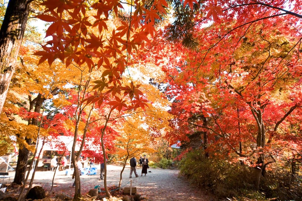 日本の石油王といわれた中野貫一宅として一般開放されている「中野邸記念館」を中心とした日本庭園には2,000本のもみじが植栽されており、燃えるようなもみじは圧巻です。